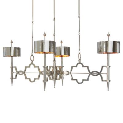 Symbolizing good luck, harmony and balance, the quatrefoil has captivated our imaginations for centuries, playing a central role in architecture and interior design. Chandeliers come in many different styles and sizes. Plus, enjoy free delivery on most items. A take on the classic quatrefoil shape, this chandelier features a graphic form in antique brass. Also available in polished nickel.